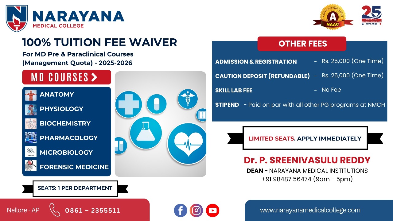 Merit Opportunity: 100% Tuition Fee Waiver – MD Pre & Para-Clinical Courses