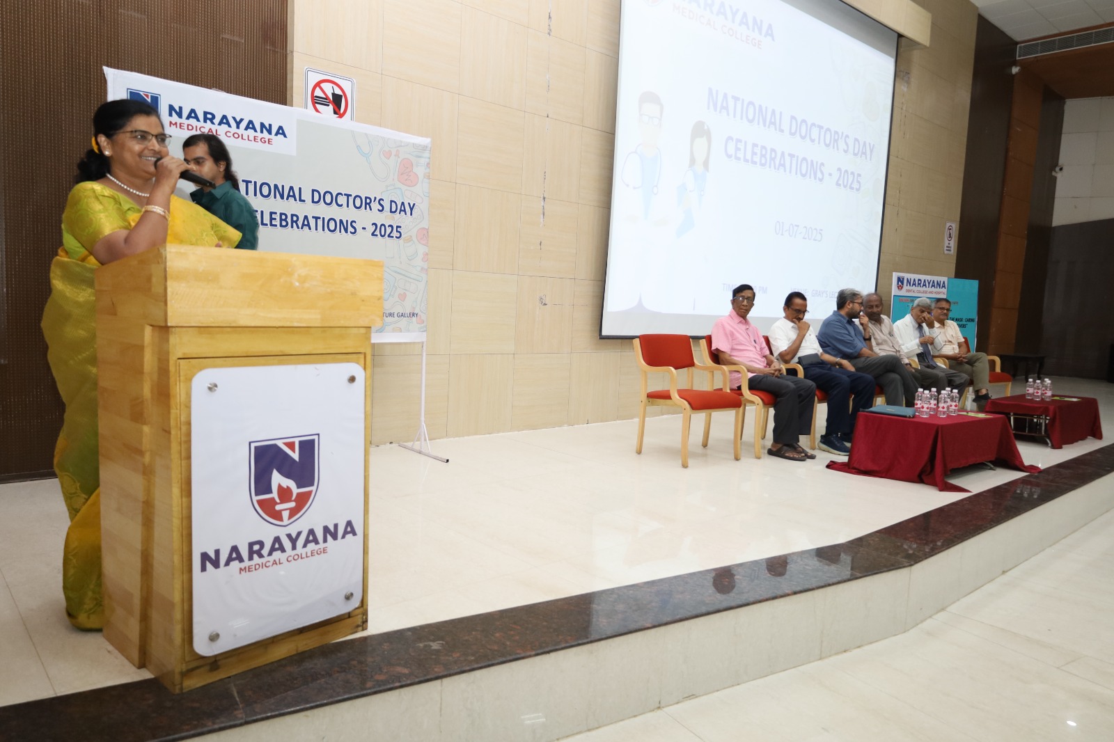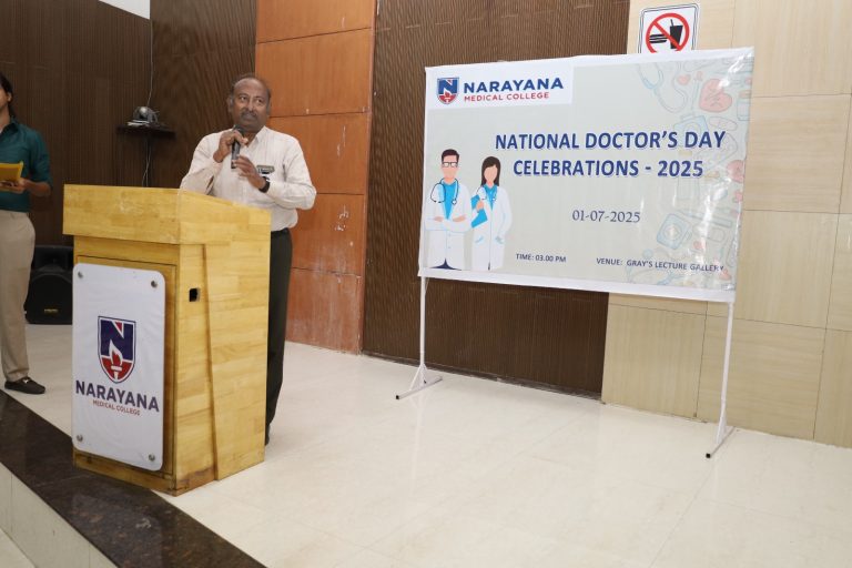 We at NARAYANA MEDICAL COLLEGE, Nellore-524003, Andhra Pradesh was honoured to celebrate Doctors’ Day on July 31. This event was graced with a heartfelt felicitation ceremony for three distinguished senior professors. Nearly 300 members—including students, faculty, and staff joined to show their appreciation. The evening was a resounding success, filled with warm tributes, inspiring speeches, and heartfelt gratitude for those who’ve greatly contributed to our medical and academic community.