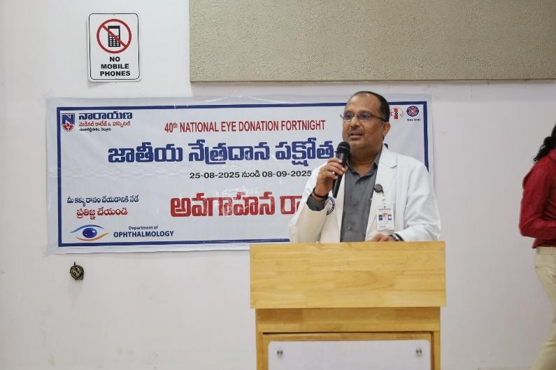 Dr. R. Harish, Additional Medical Superintendent, Narayana Hospital, informed that those willing to donate eyes may contact Narayana Medical College & Hospital Helpline – 9037104108.