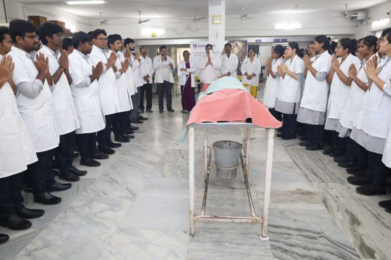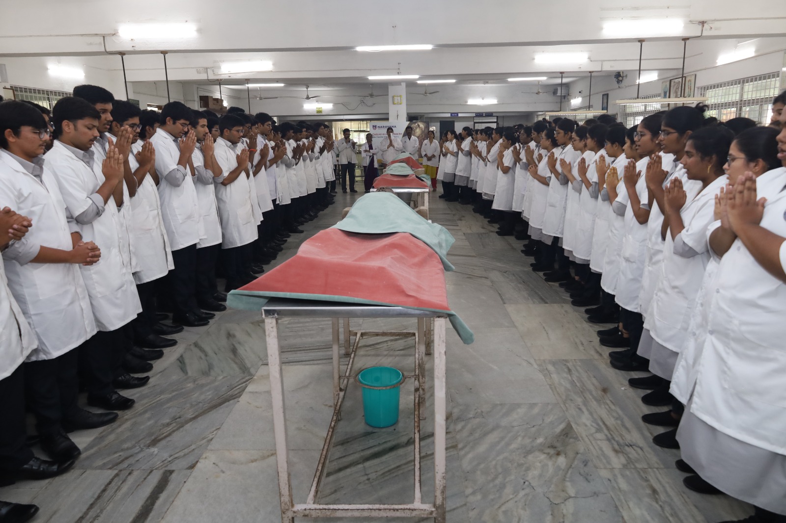 Dr. R. Suman Babu professor of Anatomy conducted the cadaveric prayer. The cadaveric prayer is a heartfelt tribute thanking the donor for their noble act of contributing to medical education even after death. Together, they instill values of compassion, ethics and reverence for human life in every budding medical professional.