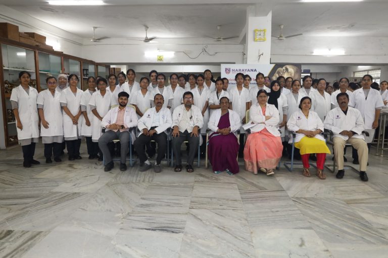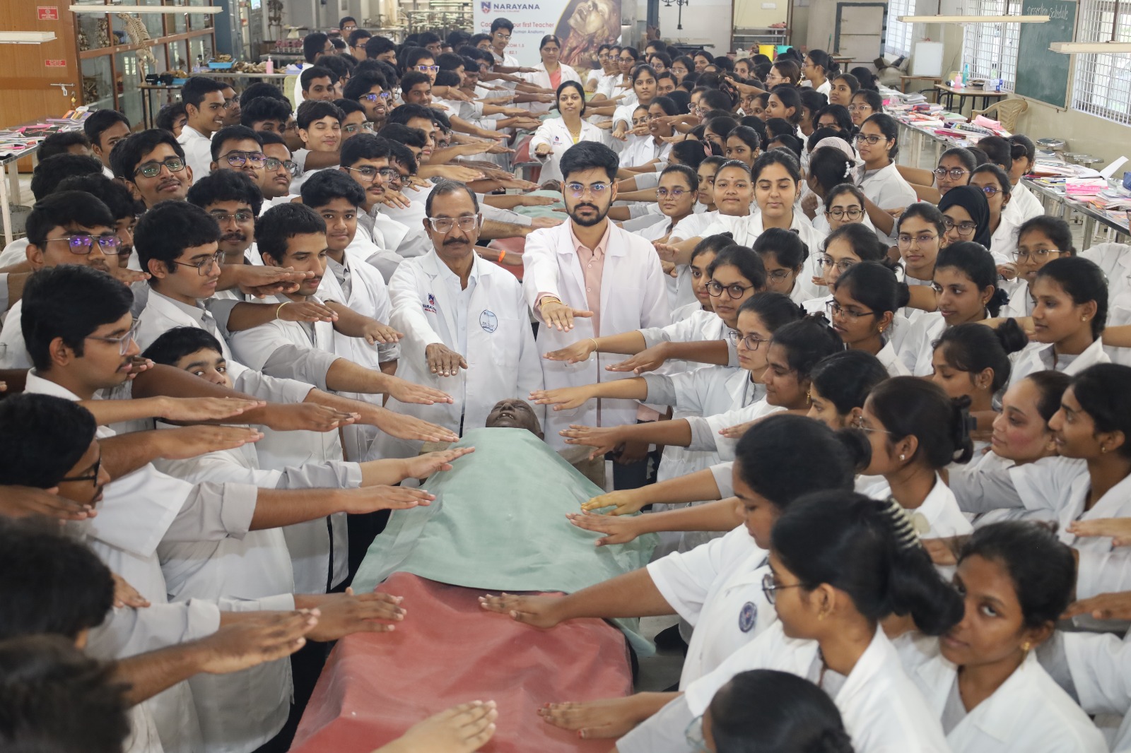 Cadaveric oath was pledged to the students by Dr. K. Ashalatha professor & head of Anatomy Department. cadaveric oath reminds students to treat the cadaver with dignity, maintain confidentiality, and use the knowledge.