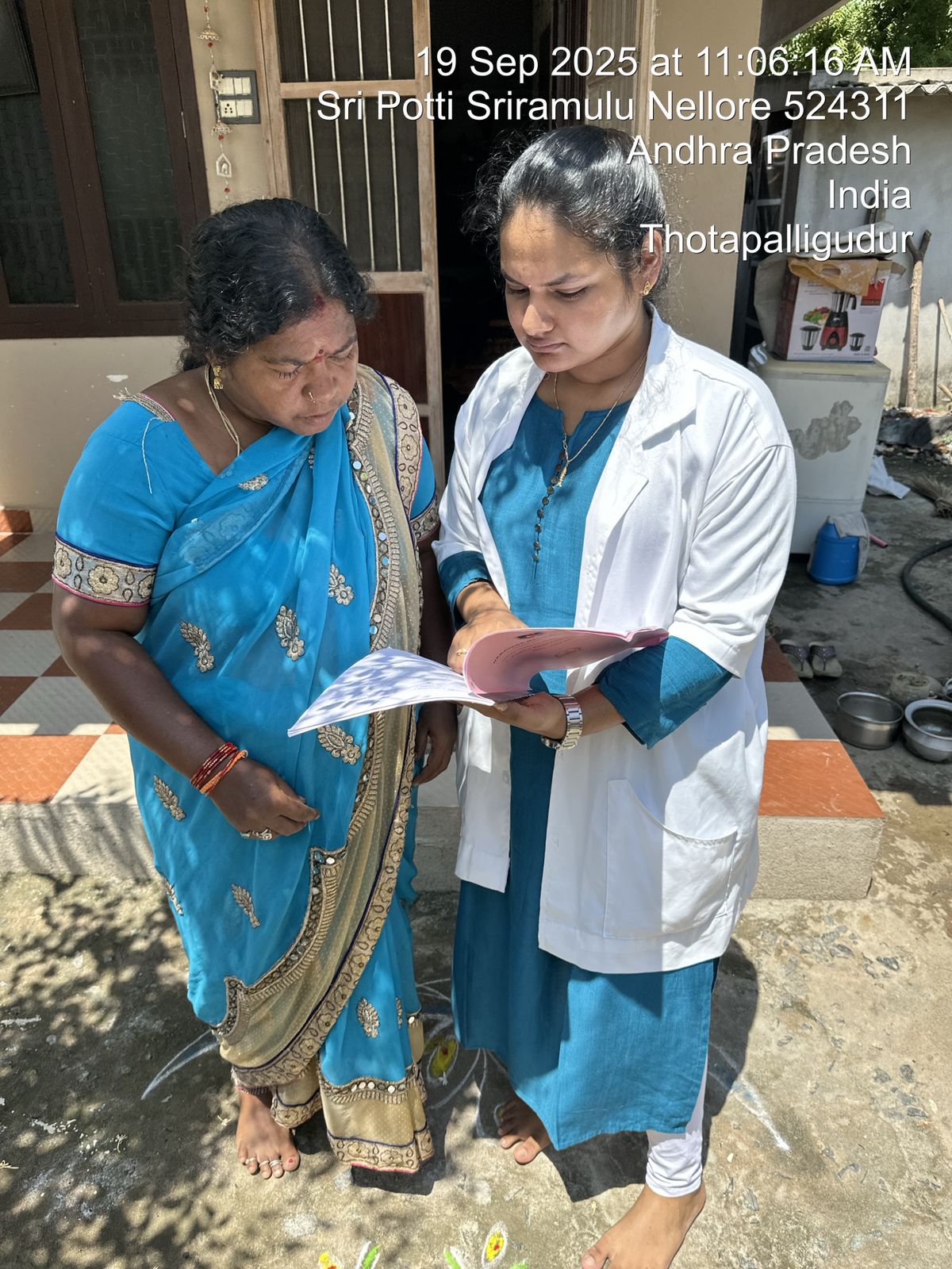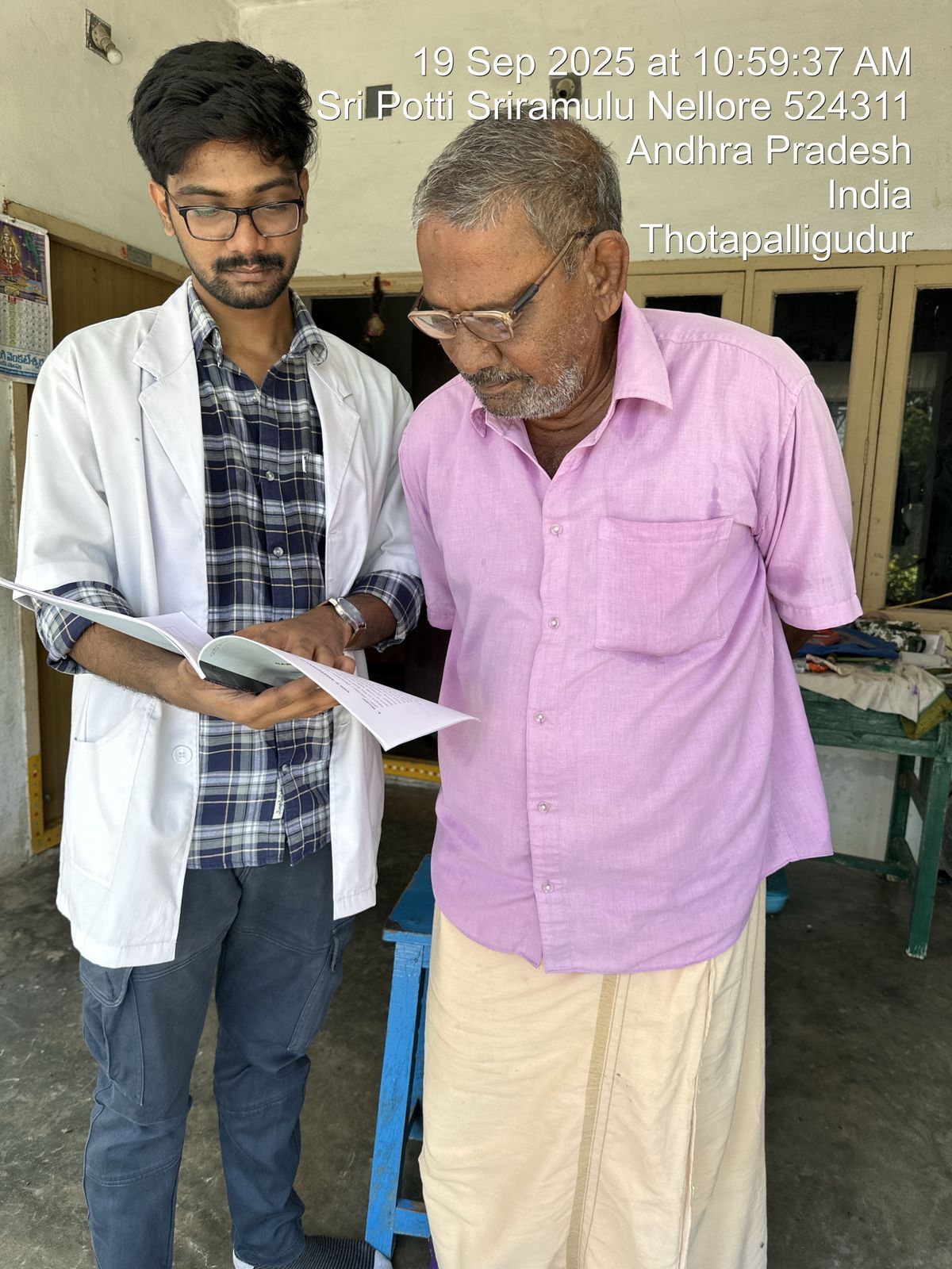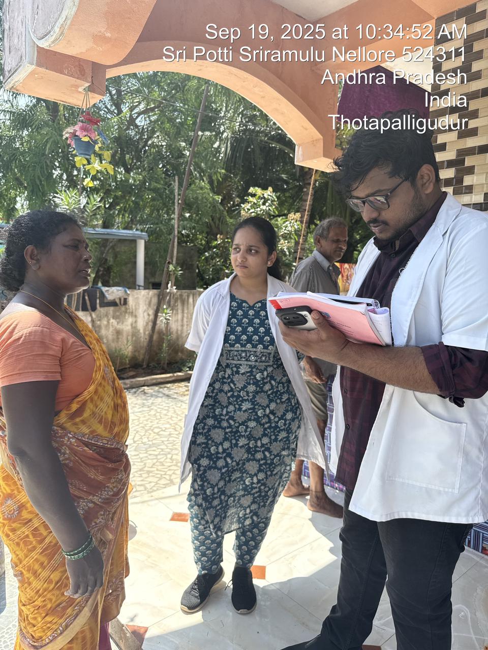 Students of Phase III Part1 MBBS 2022-23 batch were taken to Varigonda village on 19-09-25. They visited the families allotted to them in their 1st year and enquired about their health status, noted down any newly diagnosed diseases, births and deaths in the families. They also imparted health education regarding personal and environmental hygiene and the preventive measures for communicable diseases of public health importance.